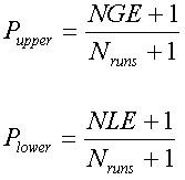 where Nruns is the total number of Monte Carlo simulations, NGE is the number of simulations for which the statistic was greater than or equal to the observed statistic, and NLE is the number of simulations for which the statistic was less than or equal to the observed value. One (1) is added to the numerator and denominator of each because the observed statistic is included in the reference distribution.
