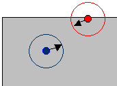 For example, a section of a larger gray study area is illustrated below. The edge of the study area is the thin black line. The red point sits at the edge of the study. The circle of radius h around it is partly outside the study, while the circle around the blue point is fully inside the study area. Data on these two points is not entirely comparable.