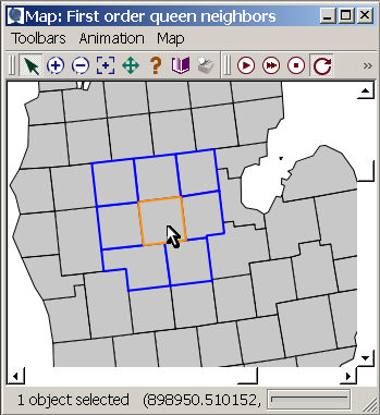 As a result, rook is a more stringent definition of polygon contiguity than queen. For rook, the shared border must be of some length, whereas for queen the shared border can be as small as one point.