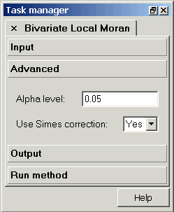 When the task manager opens for calculating the Bivariate Local Moran, it will start on the "Input" section.