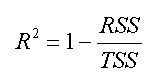 As described above, after obtaining the local parameter estimates, SpaceStat calculates the estimated mean, standard error, and residual error for the dependent variable (y) at each observation. These values are then used to calculate the residual sum of squares (RSS) and the total sum of squares (TSS) using the formulas below. Recall that "N" is the number of observations, and "M" is the number of independent variables. In the TSS formula, the "y-bar" term represents the mean value of the dependent variable observations. Recall that these calculations are done repeatedly across the "neighborhoods" in your dataset, and the results can be mapped.